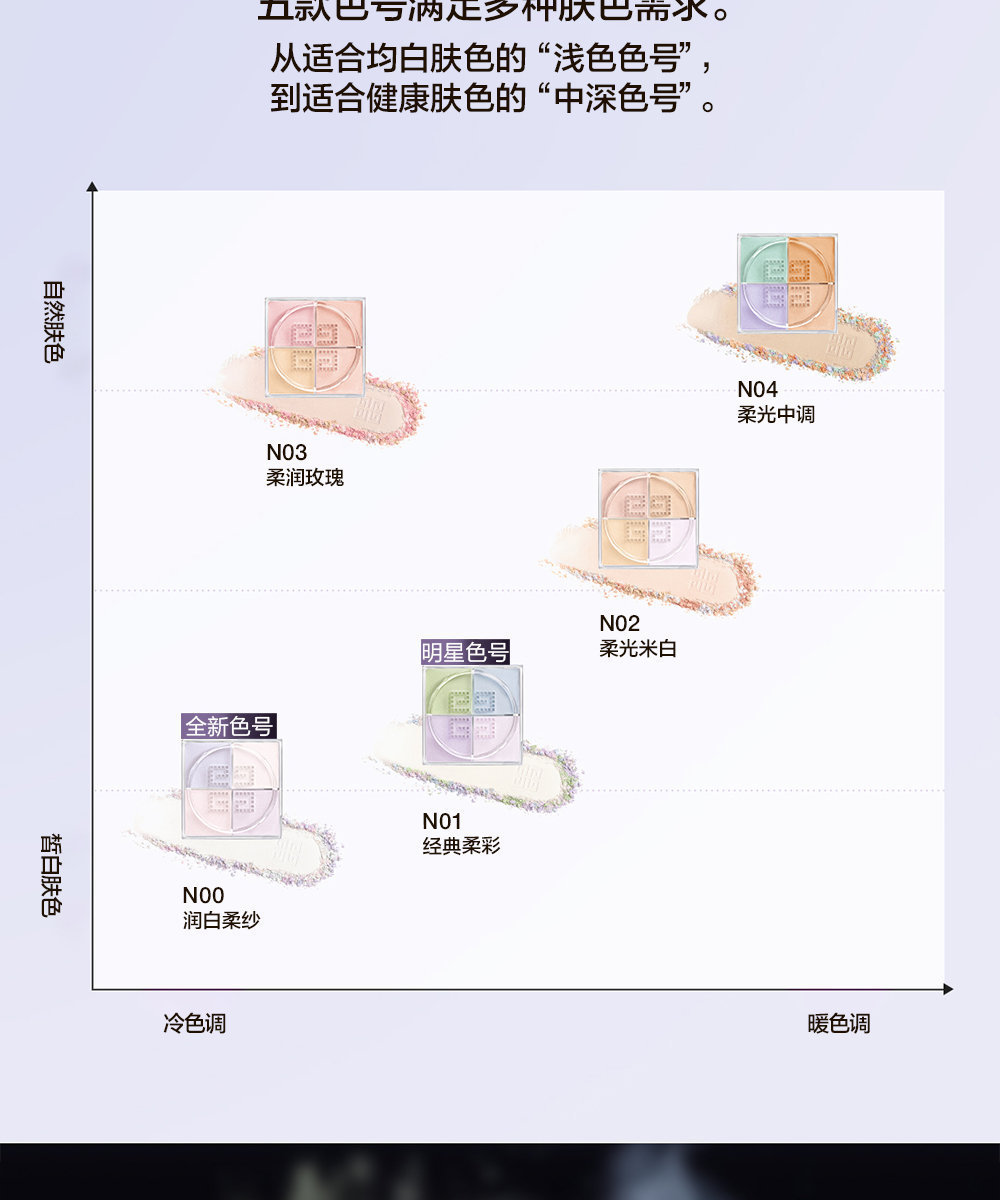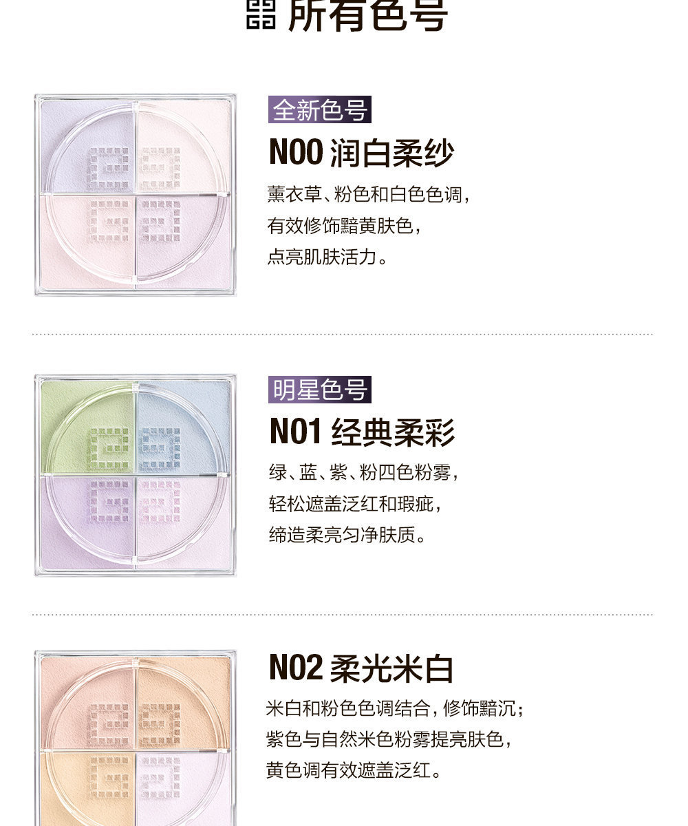 | 全部成分 | N0:滑石粉,合成氟金云母,硅石等 Talc, Synthetic Fluorphlogopite, Silica, Di-Methicone, Caprylyl Glycol, Pentylene Glycol, Phenyl Tri-Methicone, Hdi/Trimthylol Hexyllactone Crosspolymer, Sodium Dehydroacetate, Diisostearyl Malate, Octyldodecyl Stearoyl Stearate, Parfum (Fragrance), Tocopheryl Acetate, Kaolin, Sorbitan Sesquioleate, Geraniol, [+/- Ci 77891 (Titanium Dioxide), Ci 77007 (Ultramarines), Ci 77742 (Manganese Vioelet, Ci 77491 - Ci 77492 (Ironoxides), Ci 73360 (Red 30 Lake(] N1:滑石粉,合成氟金云母,硅石等 N1 Talc • Synthetic Fluorphlogopite • Silica • Dimethicone • Caprylyl Glycol • Pentylene Glycol • Phenyl Trimethicone • Sodium Dehydroacetate • Diisostearyl Malate • Octyldodecyl Stearoyl Stearate • Parfum (Fragrance) • Tocopheryl Acetate • Kaolin • Sorbitan Sesquioleate • [+/- Ci 77288 (Chromium Oxide Greens) • Ci 77007 (Ultramarines) • Ci 77742 (Manganese Violet) • Ci 19140 (Yellow 5 Lake) • Ci 77891 (Titanium Dioxide) • Ci 77491 (Iron Oxides)] N2:滑石粉,合成氟金云母,硅石等 N2 Talc • Synthetic Fluorphlogopite • Silica • Dimethicone • Caprylyl Glycol • Pentylene Glycol • Phenyl Trimethicone • Hdi/Trimethylol Hexyllactone Crosspolymer • Sodium Dehydroacetate • Diisostearyl Malate • Octyldodecyl Stearoyl Stearate • Tocopheryl Acetate • Parfum (Fragrance) • Sorbitan Sesquioleate • Geraniol • Kaolin • [+/- : Ci 77891 (Titanium Dioxide) • Ci 77742 (Manganese Violet) • Ci 19140 (Yellow 5 Lake) • Ci 77491 - Ci 77492 - Ci 77499 (Iron Oxides) • Ci 73360 (Red 30 Lake) • Ci 77007 (Ultramarines)] N3:滑石粉,合成氟金云母,硅石等 N3 Talc • Synthetic Fluorphlogopite • Silica • Dimethicone • Caprylyl Glycol • Pentylene Glycol • Phenyl Trimethicone • Hdi/Trimethylol Hexyllactone Crosspolymer • Sodium Dehydroacetate • Diisostearyl Malate • Octyldodecyl Stearoyl Stearate • Parfum (Fragrance) • Tocopheryl Acetate • Sorbitan Sesquioleate • Geraniol • [+/- : Ci 77891 (Titanium Dioxide) • Ci 73360 (Red 30 Lake) • Ci 19140 (Yellow 5 Lake) • Ci 77742 (Manganese Violet) • Ci 77491 - Ci 77492 - Ci 77499 (Iron Oxides)] N4 滑石粉,合成氟金云母,硅石等 N4 Talc • Synthetic Fluorphlogopite • Silica • Dimethicone • Caprylyl Glycol • Pentylene Glycol • Phenyl Trimethicone • Hdi/Trimethylol Hexyllactone Crosspolymer • Sodium Dehydroacetate • Diisostearyl Malate • Octyldodecyl Stearoyl Stearate • Parfum (Fragrance) • Tocopheryl Acetate • Sorbitan Sesquioleate • Kaolin • Geraniol • [+/- : Ci 77007 (Ultramarines) • Ci 19140 (Yellow 5 Lake) • Ci 77742 (Manganese Violet) • Ci 15850 (Red 6) • Ci 42090 (Blue 1 Lake) • Ci 73360 (Red 30 Lake) • Ci 77891 (Titanium Dioxide) • Ci 77491 - Ci 77492 - Ci 77499 (Iron Oxides)] |